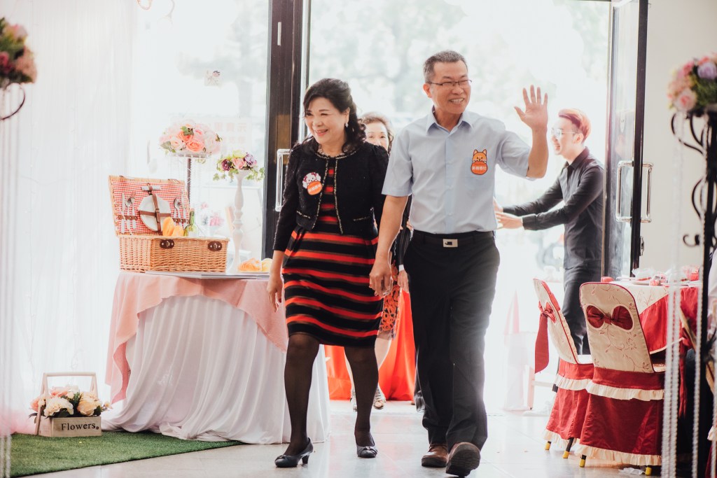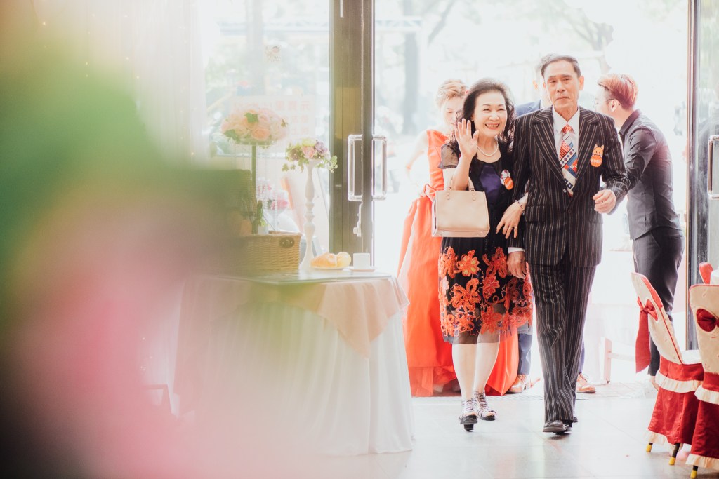 即使沒有飯店的華麗大門映襯,爸爸媽媽一走進場,看見大家開心的笑容,接著又聽見熱情的鼓掌祝賀,此時內心的感謝與喜悅,那是藏不住的!謝謝攝影師 美好時光攝影工作室/Ethan,紀錄這一刻的美好!