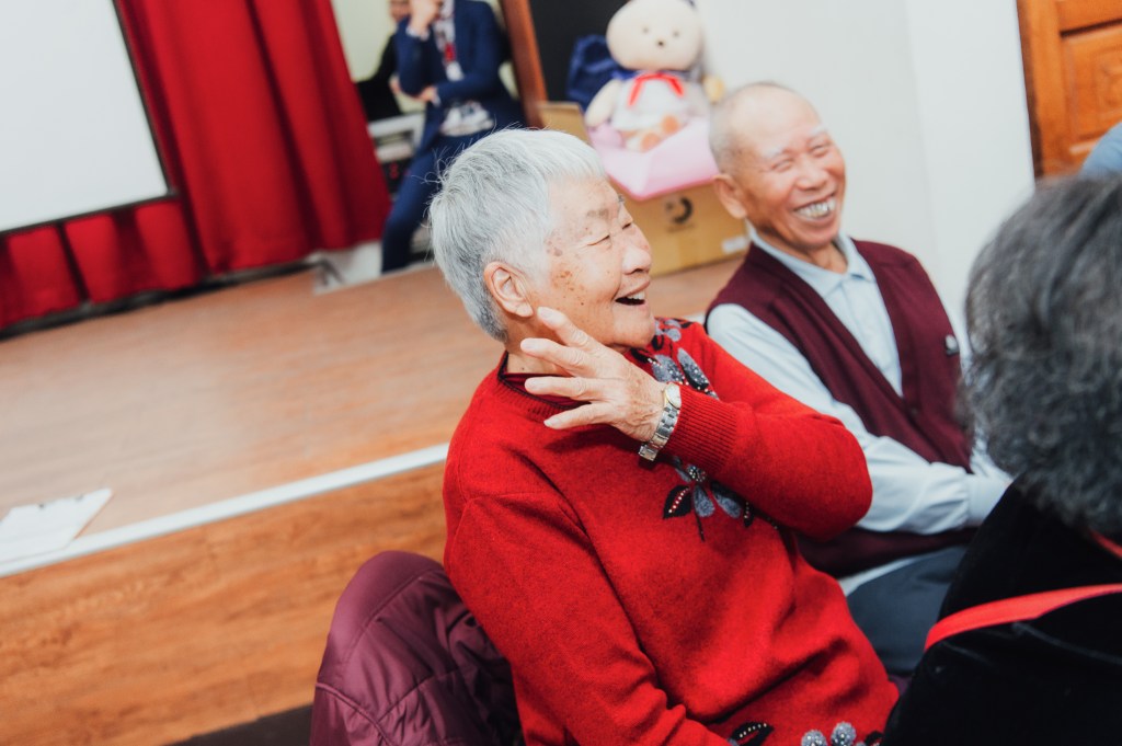 好喜歡阿公阿嬤的笑容!那是走過數十載的歲月,經歷了風風雨雨,這個時刻,感受著婚禮現場的歡樂氛圍,發自內心的那種淡然又自在地笑著!