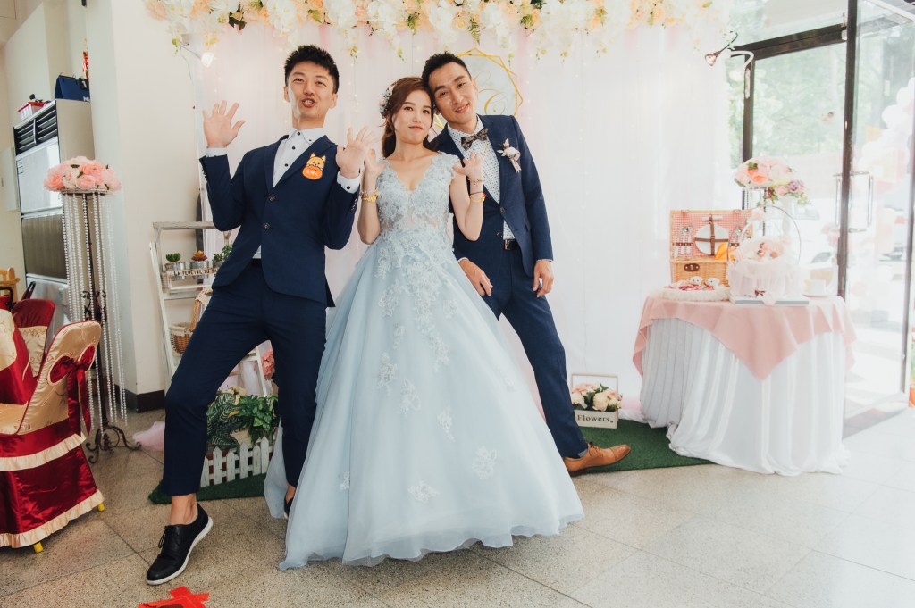 很有想法的新人,特別準備了可愛的狗狗造型胸牌,除了給爸爸媽媽戴上,也提供給現場每一位工作人員,包含婚禮樂團的樂手老師、小助理等等,很是用心呀!