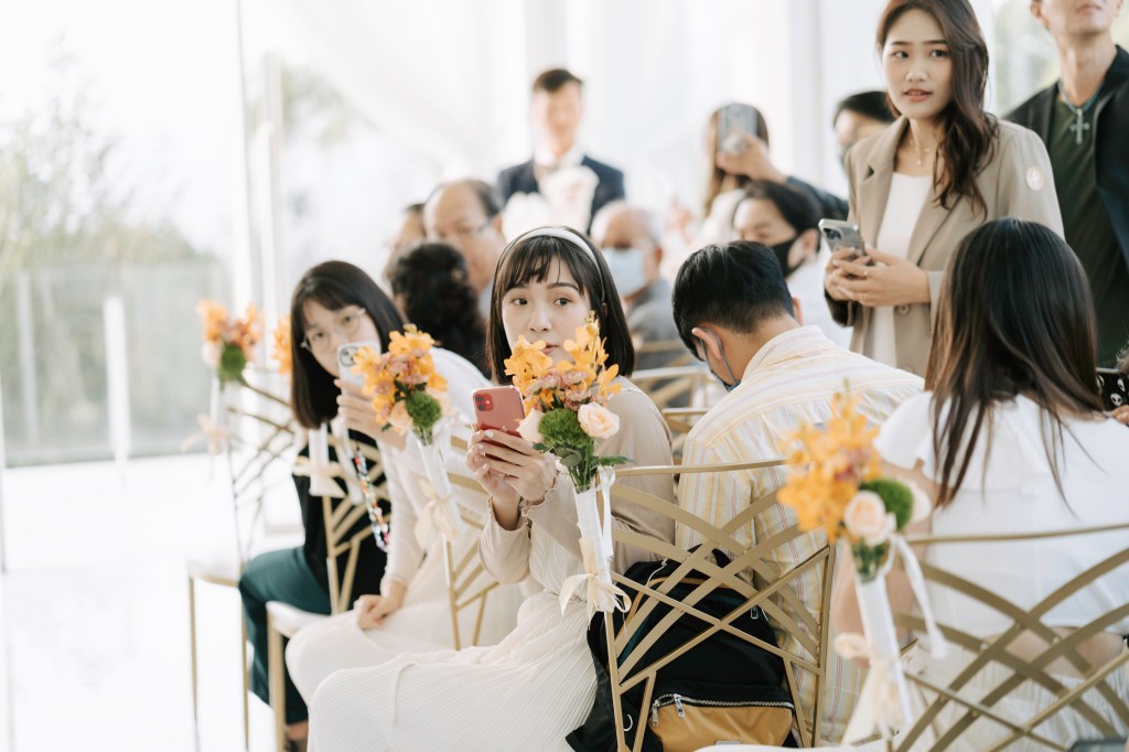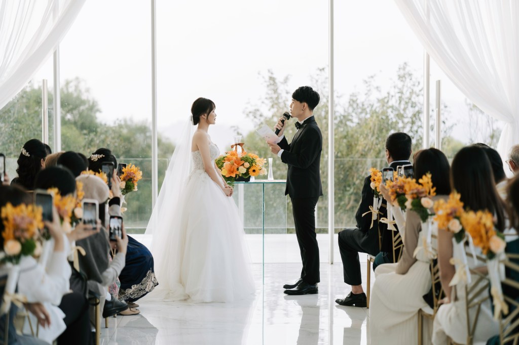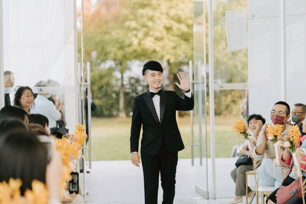 這場婚禮從下午就開始,率先在玻璃教堂舉行證婚儀式,正式開始前,就感受到姊妹們引頸期盼的心情~