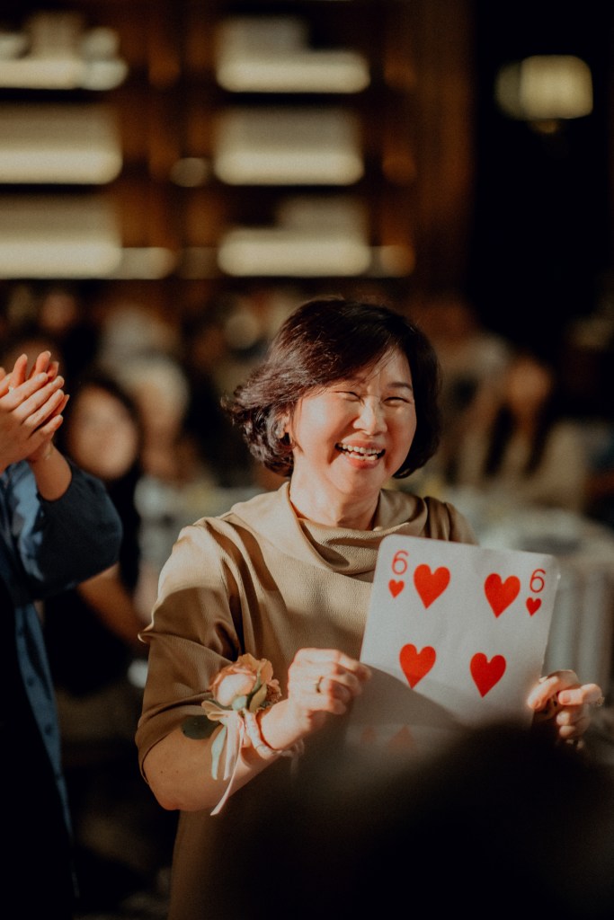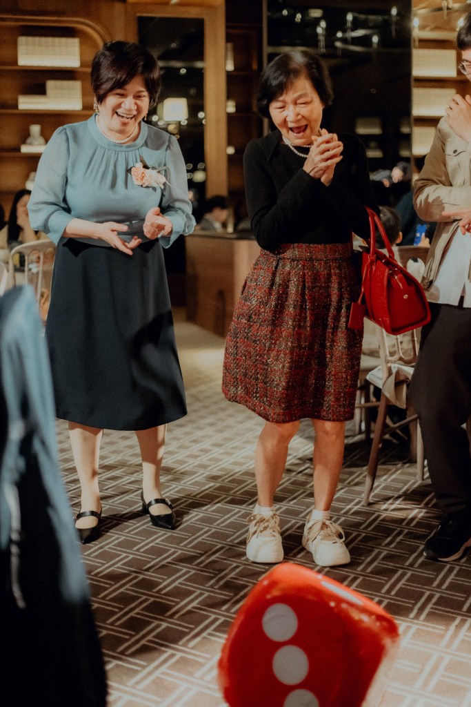婚禮是新人的美好開始,也是家人與朋友們的慶典;那天,隨著氣氛堆疊,我便順勢帶著媽媽們一起來和大家同樂、輕鬆自在地參與、一起開心地笑著~